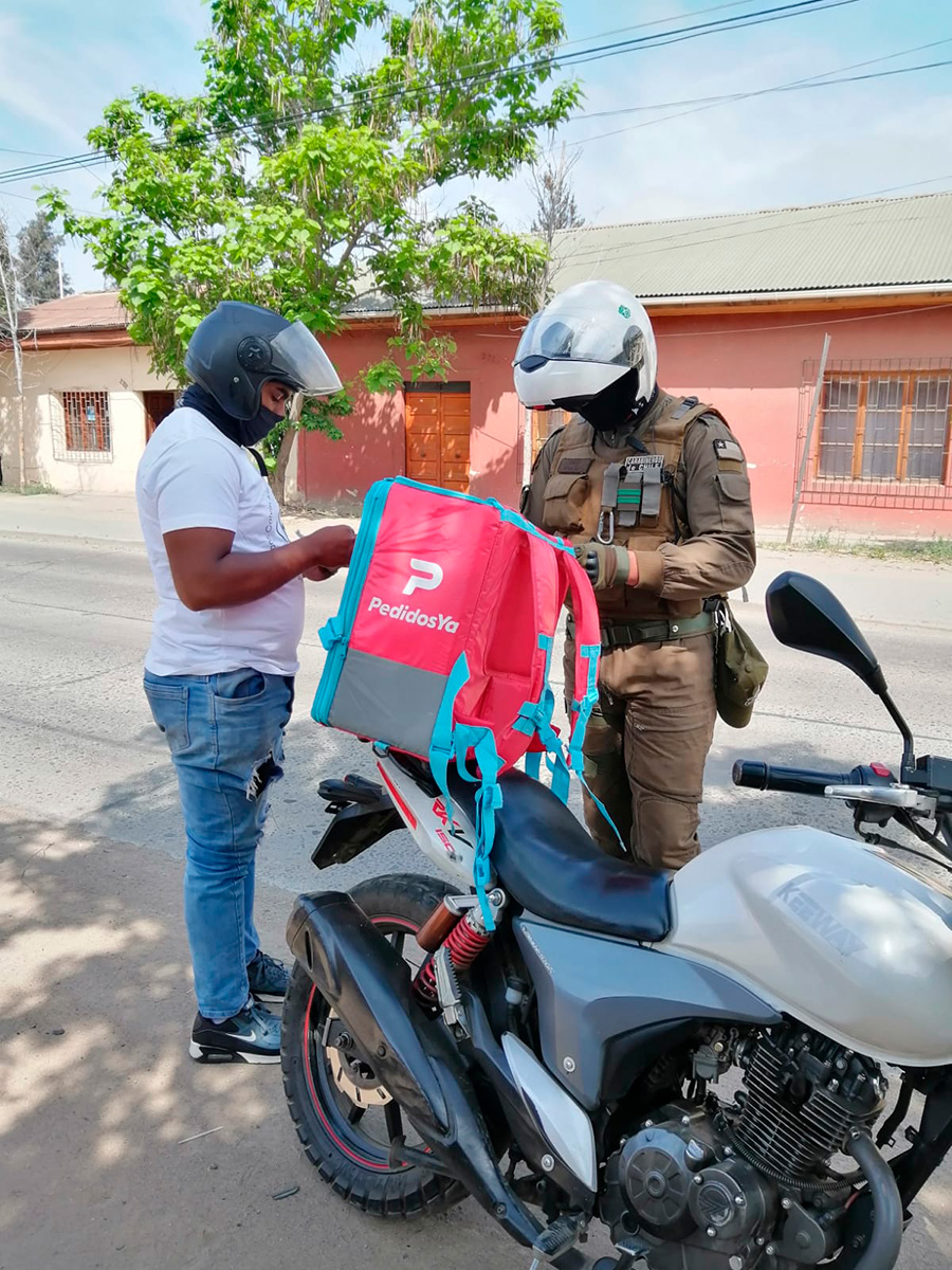 Se retiraron 12 vehículos y se detuvo a dos personas por orden vigente. La fiscalización focalizada a motocicletas y vehículos delivery buscaba aumentar la sensación de seguridad en la comunidad y prevenir la ocurrencia de delitos. Durante la mañana y de forma simultánea en las comunas de Rancagua, Graneros, Peumo, San Vicente y Rengo, Carabineros se desplegó por las principales arterias de estas comunas para fiscalizar de forma focalizada motocicletas y vehículos de delivery, para aumentar la sensación de seguridad en la población.   El jefe de Zona (s), Coronel Nibaldo Sánchez Cabrera, señaló -en Plaza de Los Héroes de Rancagua- al dar inicio a la fiscalización a las 9 horas, que “Carabineros está trabajando para entregar mayor seguridad a la comunidad y evitar a través de las fiscalizaciones permanentes la ocurrencia de ilícitos”. Carabineros se desplegó por toda la Prefectura de Cachapoal, entre las 9 y 12 horas, realizando controles de identidad y vehicular. En el caso de Rancagua de forma conjunta con personal de Seguridad de la Delegación Presidencial Regional y Seguridad Municipal, Carabineros se distribuyó en varios puntos de la capital regional, realizando fiscalizaciones en Alameda (frente gimnasio Hermógenes Lizana), calle Campos, Miguel Ramírez y sector oriente de la ciudad. También en las comunas de Rengo, San Vicente de Tagua-Tagua, Graneros y Peumo, se fiscalizó hasta pasado el mediodía en los sectores céntricos de las ciudades, enfocado a control de la documentación del transporte delivery.