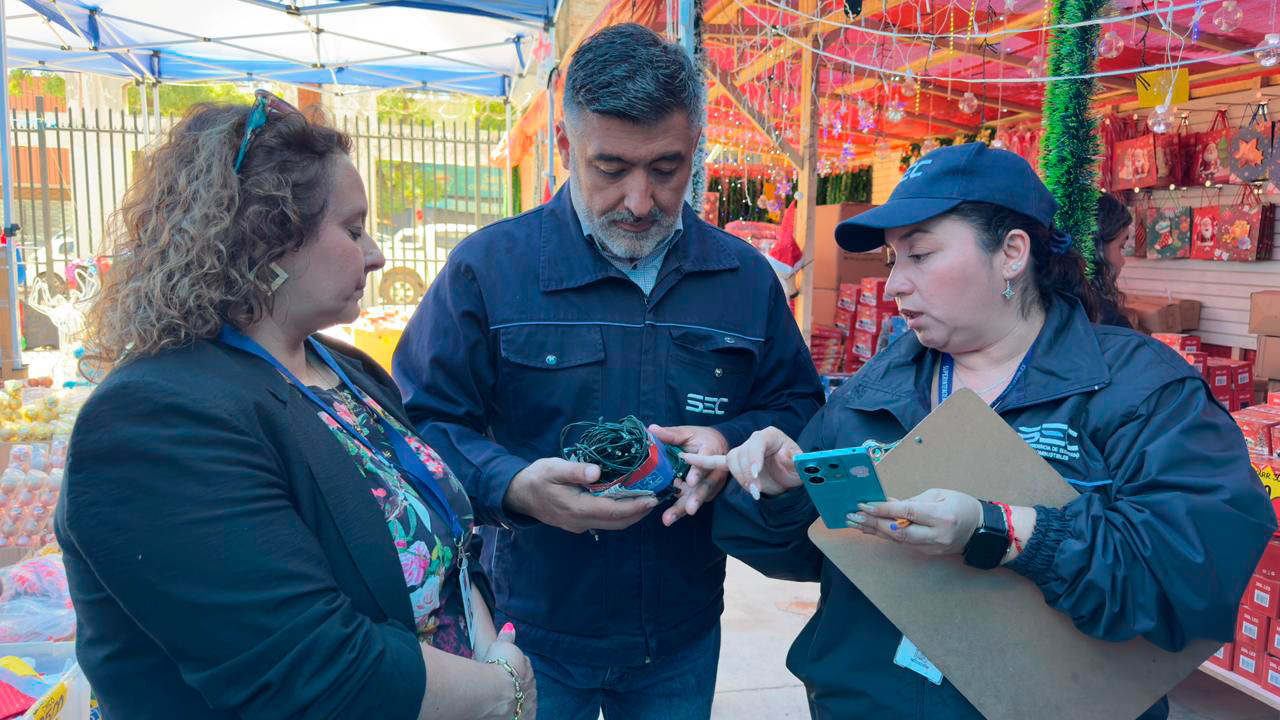 Región del Maule.- Con el objetivo de garantizar la seguridad y evitar la comercialización de artículos que no cuenten con certificación SEC, se desplegó la seremi de Energía junto al equipo de la Superintendencia de Electricidad y Combustibles (SEC), para fiscalizar y revisar que guirnaldas eléctricas, luces u otros productos relacionados a la decoración navideña cuenten con la certificación debida.