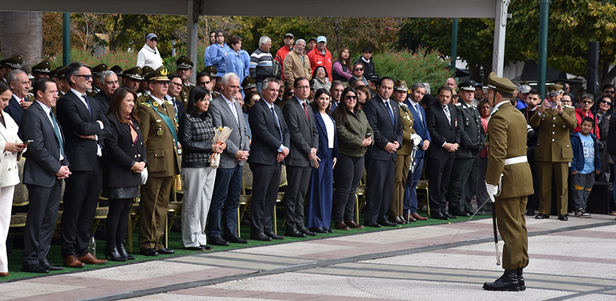 Con un minuto de silencio en homenaje a los Carabineros fallecidos en actos de servicio y el Izamiento del Pabellón Patrio, se dio inicio a la ceremonia de conmemoración del Aniversario de Carabineros de Chile, con presencia del Gobernador Regional, Pablo Silva Amaya; la Delegada Presidencial, Susana Pinto; el senador Javier Macaya, la diputada Natalia Romero, la Ministra de la Mujer y Equidad de Género, Judith Marín Morales; el Fiscal Regional Aquiles Cubillos, Seremi de Seguridad Pública Nicolás Muñoz; alcalde de la capital regional, Raimundo Agliati; y representantes de la PDI y Fuerzas Armadas.