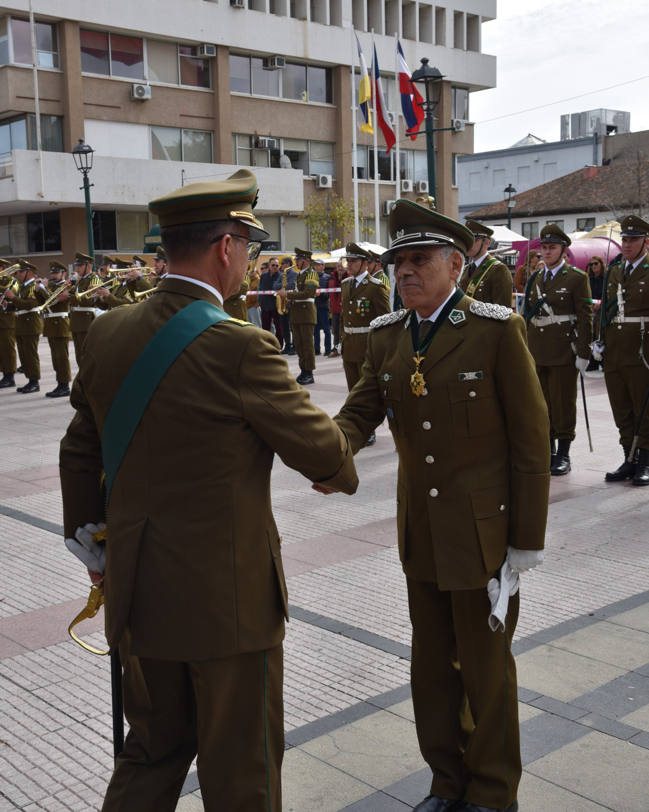 En este día especial, que Carabineros de Chile cumple un hito trascendental en su historia Camino al Centenario, se reconoció la perseverancia y compromiso público de aquellos oficiales que han cumplido 30 años de servicio. Recibieron esta merecida Medalla, el Mayor de los Servicios de Veterinaria, Claudio Marcelo Rojas Silva; y la Coronel Oriana Fuentealba Valdés.