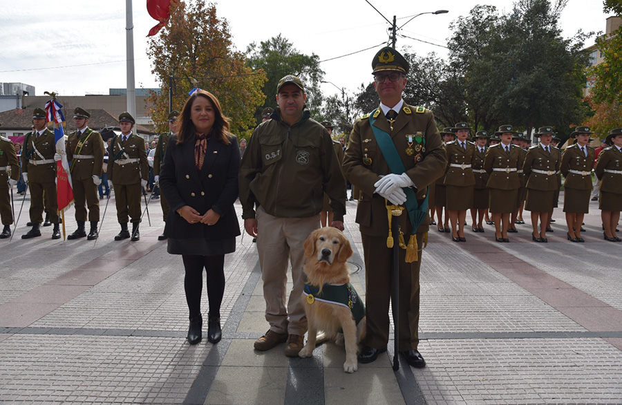Durante la ceremonia, la Delegada Presidencial O’Higgins, Susana Pinto, junto al General Bohle Guichacoi, realizaron un homenaje de despedida por su retiro, al can policial “Gazam del Emblema Verde”. Junto a su guía, el Sargento 2° Rodrigo Ibacache Castro, el can de la Sección OS-7 O’Higgins recibió el reconocimiento de las autoridades y el aplauso de la comunidad por su labor desempeñada durante estos años de entrega infalible en contra del narcotráfico.