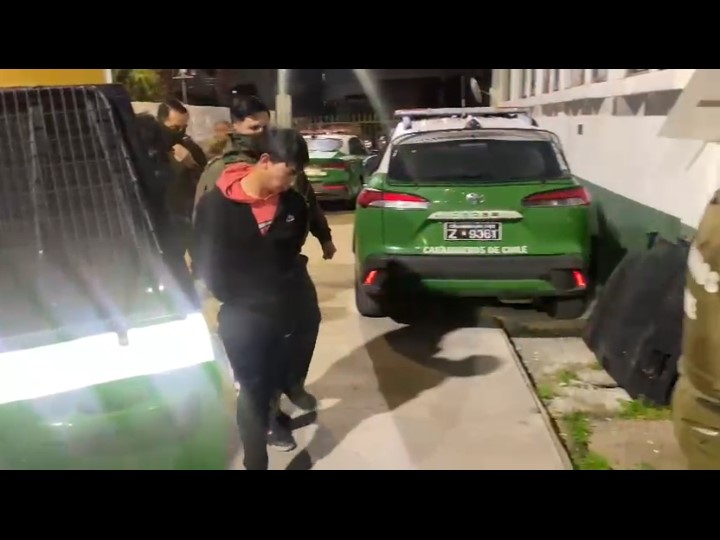Se incautó una pistola de fogueo marca ISSC, modificada para su uso con cuatro municiones calibre .38. Todos los detenidos son chilenos y registran antecedentes penales, aunque sin órdenes vigentes.