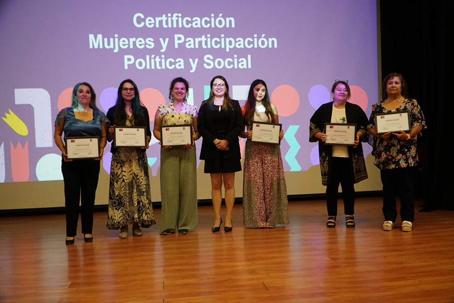 En el Teatro Abate Molina del Centro de extensión de la Universidad de Talca se certificaron más de 60 mujeres quienes egresaron del programa Mujeres y Participación Política y Social (MPPS) de SernamEG Maule.