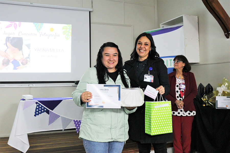 La presidenta del Comité, matrona Karla Casas-Cordero, se mostró emocionada y conforme con lo realizado, “durante todo el mes de agosto, programamos una serie de actividades para conmemorar la lactancia materna, donde hicimos participar tanto a la comunidad usuaria como a nuestros funcionarios. Tuvimos el concurso de fotografía donde recibimos 17 imágenes alusivas a este importante acto, con una votación popular en stands informativos tanto en el hospital como en el Mall Vivo”. Los ganadores fueron: 1° lugar Yasna Mella con 40 votos, 2° lugar Valentina Rebolledo con 37 votos y 3° lugar Solange Basualto con 36 votos.