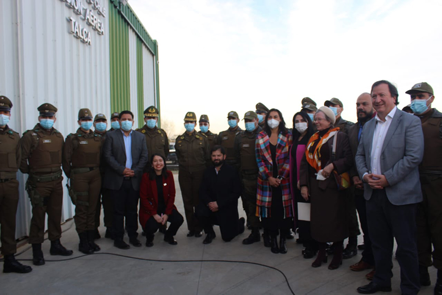 Posteriormente el presidente abordó el tren para dirigirse a Talca y anunciar junto a la ministra del Interior, Izkia Siches, el mejoramiento y aumento de recursos para Carabineros en materia de seguridad en la región, actividad que se efectuó en el Aeródromo Panguilemo, en el km. 245 de la Ruta 5 Sur interior.