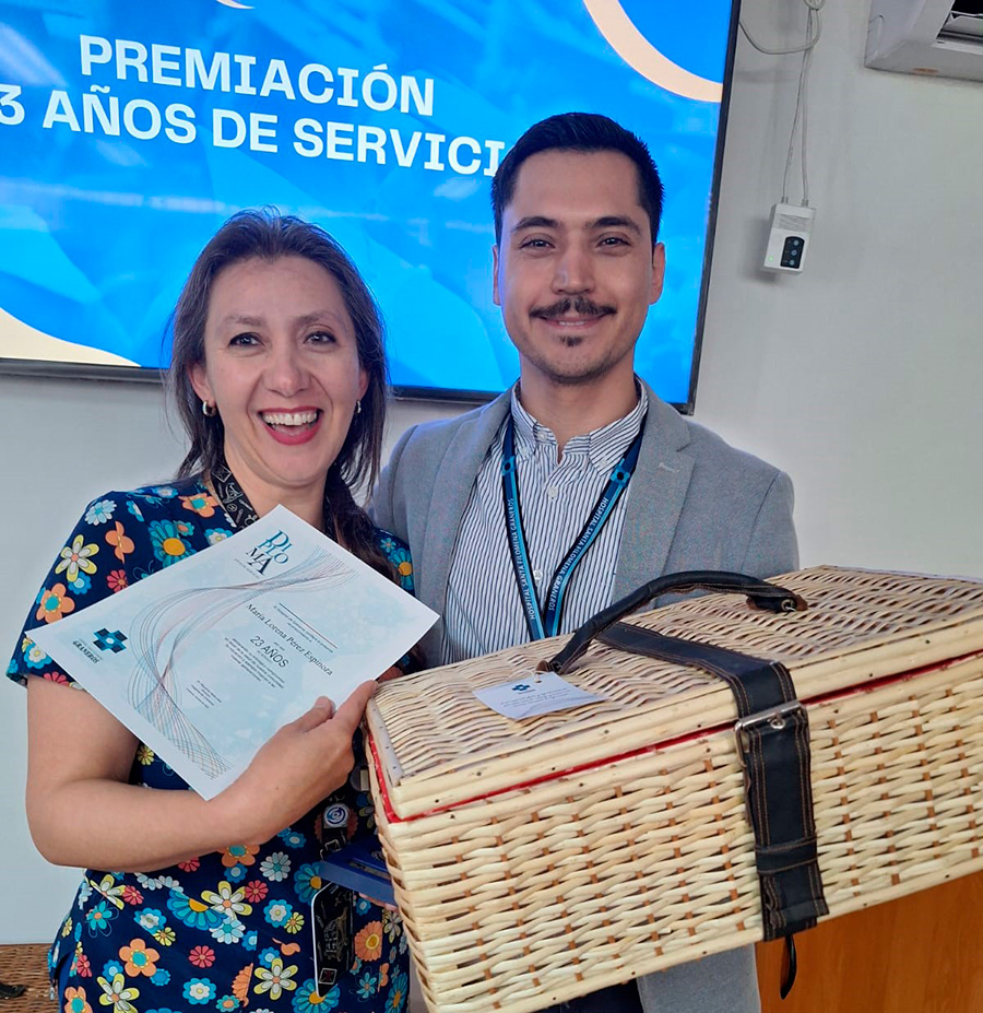 Asimismo, fueron homenajeados por 22 años de servicio, Patricia Román Gatica, y por 23 años de servicio, María Lorena Pérez Espinoza, José Luis Becerra Ibarra y Georgina Castro Ortega. Finalmente, recibió un reconocimiento por 24 años de servicio, Mónica Maraboli Fuenzalida.