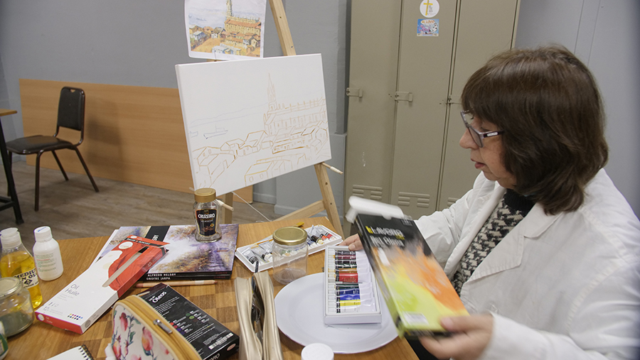 El taller de “Artes visuales” es uno de los más populares, pues se viene realizando hace varios años y, con el paso del tiempo, ha sumado más interesadas e interesados. Una de las alumnas es Verónica Justiniano, quien desde el 2017 forma parte del taller. “Para mí éste es un sueño que tenía desde hace mucho tiempo. Toda mi familia está ligada al mundo del arte y yo siempre tuve esas ansias, pero no pude dedicarme porque preferí dejar que mis hijas estudiaran. Ahora que puedo, es algo maravilloso, ya que me calma y estoy feliz pintando”, indicó.