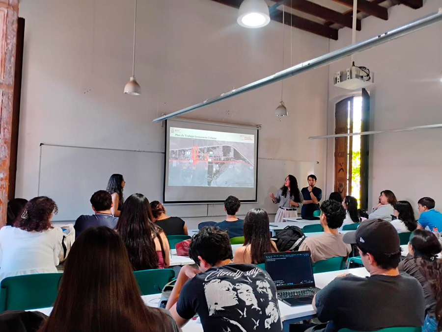 En ese marco, el pasado 1 de abril el equipo territorial del programa se trasladó hasta la FAU para presentar ante estudiantes los principales desafíos urbanos, sociales y territoriales del proceso que se desarrolla en Pelequén. La actividad marcó el inicio de un taller transversal en el que participan alumnos y alumnas de las carreras de Arquitectura, Diseño y Geografía, quienes tomarán a esta localidad como caso de estudio.