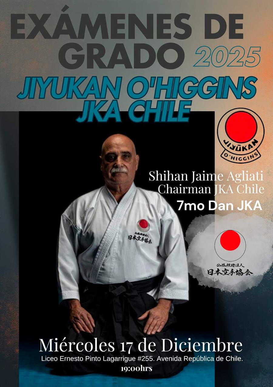 La responsabilidad técnica del proceso estará a cargo del Shihan Jaime Agliati, Chairman de JKA Chile y 7º Dan JKA, máxima autoridad de la organización en el país. Su labor será evaluar el desempeño integral de los karatekas, cuyo resultado definirá el ascenso de grado, incluyendo el acceso al primer Dan en cinturón negro, uno de los hitos más significativos en la formación de un practicante de Karate Shotokan.