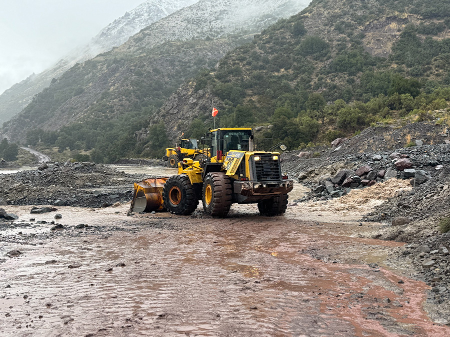 Los trabajos de despeje de la ruta J-55 en la zona precordillerana estuvieron a cargo de la Dirección de Vialidad del Ministerio de Obras Públicas (MOP), la que dispuso una retroexcavadora para la rehabilitación de la conectividad.