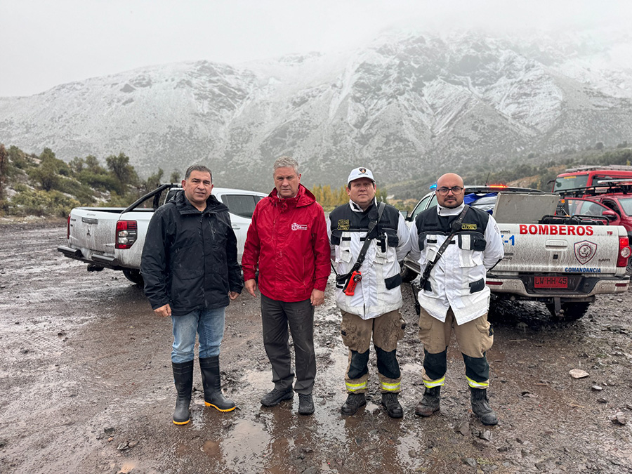 El delegado presidencial de la provincia de Curicó, Óscar Águila, junto al alcalde de Romeral, José Antonio Arellano, se trasladaron a terrero para verificar la situación de las nueve personas (6 adultos y 3 niños) aisladas en el sector del Refugio SAG, ubicado en el km 62 de la ruta J-55.