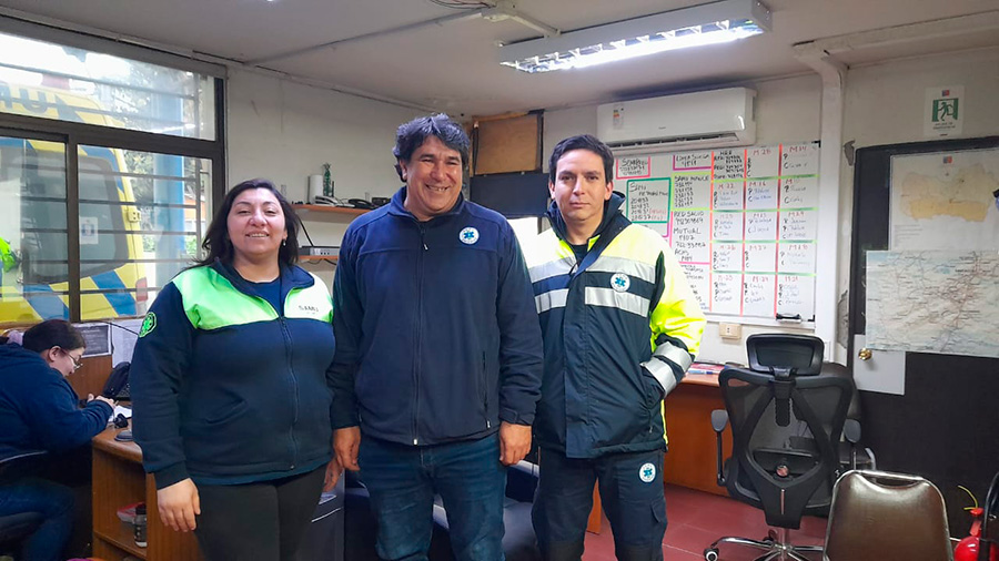 En la comuna de San Fernando paciente demoró menos de 20 minutos en tener su bebé por lo que no alcanzó a ir a un centro asistencial. Una emotiva experiencia debió vivir el personal del Centro Regulador de SAMU O’Higgins, luego de tener que apoyar a una paciente que se encontraba dando a luz en su domicilio en el sector de Angostura de la comuna de San Fernando. Fueron unos minutos después de las 8 de la mañana que ingresó al Centro Regulador de SAMU una llamada que fue recibida por la radioperadora Susana Delgado “era una mujer de 25 años con 37 semanas de embarazo, que señalaba que se encontraba en trabajo de parto y no había tenido ruptura de membranas, pero nos señala que tenía ya dos hijos y que tampoco había tenido ruptura en sus partos anteriores y que era de partos rápidos, se procedió a despachar la ambulancia y le señalé que nos contactara de nuevo si sentía que la cabeza del bebé estaba descendiendo”. No habían pasado más que un par de minutos cuando el radioperador Fernando Lizana recibe la segunda llamada “donde la paciente dice que ella siente que la guagua ya se le está acomodando y que va a salir su cabecita, en ese momento estaba Jaime Lira como enfermero a cargo, a quien se le pide el apoyo para que le dé las indicaciones porque la paciente me preguntaba que podía hacer y mientras Jaime le daba las indicaciones, me comuniqué vía radial con el móvil avanzado que iba al domicilio para que ellos supieran en qué estado estaba la paciente y lo que estaba pasando en el domicilio”. Aunque la ambulancia ya se encontraba en camino, el domicilio de la paciente se encuentra en un sector rural, a unos 15 minutos de la comuna de San Fernando, por ello el enfermero Jaime Lira tomó la llamada “y comenzamos a apoyarla desde el punto de vista clínico, tratando en una primera instancia tranquilizarla para ver si se podía esperar la llegada del móvil, pero el parto era ya inminente y previamente la operadora pidió que se comunicara con un familiar, el cual justo llegó en ese momento, quien nos prestó bastante ayuda”. Agregó que al llegar el hermano de la paciente “se le pidió que trajera toallas limpias y que se posicionara para recibir al bebé y se le solicitó a la paciente que pujara y como era una persona con múltiples partos no era tan complicado y además venía en posición cefálica que era un posición más fácil de hacer la expulsión del feto, así que nació en la casa, se le dio la indicación de que tomaran una toalla y que lo cubrieran, que lo estimularan porque al principio no se le escuchaba el llanto, pero después de la estimulación se escuchó el llanto por vía telefónica y eso nos tranquilizó bastante”. Añadió que “después se le pidió que cubriera la bebé y que se lo pasara a la madre para que lo pusiera en el pecho, sin cortar el cordón y allí ya estaba más vigoroso, se escuchaba el llanto y entonces el cordón cortó en forma súbita y se les dio la indicación del clampeo (pinzamiento) del cordón umbilical, la contención de la hemorragia y entonces se esperó la llegada de la ambulancia, donde la estuvimos acompañando vía telefónica hasta que llegó el móvil”. Ya recuperándose en el Hospital de San Fernando, Barbara Montoya agradeció el apoyo prestado por el Centro Regulador de SAMU “estaba sola con mis dos hijos pequeños y sentía que no daba más, llame al SAMU y allí me indicaron lo que debía hacer, que tratara de aguantar un poquito y le fuera contando si sentía algo, me ayudaron harto porque no sabía que hacer, después nace la bebé y nos dijeron que la acomodara al lado mío en mi pecho y estuviera atenta si escuchaba el sonido de la ambulancia para que alguien saliera y me prestaron altiro el servicio y me trajeron al hospital de San Fernando. Estamos bien las dos y todo salió super bien”.Finalmente señaló que fue bastante rara la experiencia porque además de ser en la casa “fue muy rápido, demasiado rápido, yo tenía para el 1 de septiembre, así que se adelantó como 2 semanas, pero además empecé con las contracciones y como a la media hora ya había nacido mi hija”.